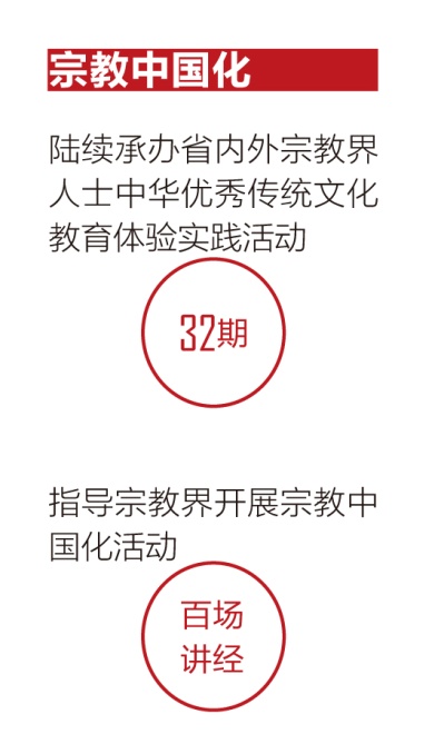 山東不斷創(chuàng)新探索宗教中國化的形式和內(nèi)容,教育引導(dǎo)宗教界人士和信教群眾培育和踐行社會(huì)主義核心價(jià)值觀、弘揚(yáng)中華優(yōu)秀傳統(tǒng)文化,不斷增進(jìn)“五個(gè)認(rèn)同”。加強(qiáng)理論研究,發(fā)揮儒家文化發(fā)祥地和紅色文化富集地優(yōu)勢,成立山東省民族宗教研究會(huì)、山東宗教界優(yōu)秀傳統(tǒng)文化教育實(shí)踐基地,先后舉辦“儒學(xué)與宗教中國化”研討會(huì)、宗教中國化座談會(huì)等活動(dòng)。強(qiáng)化教育引導(dǎo),陸續(xù)承辦了32期省內(nèi)外宗教界人士中華優(yōu)秀傳統(tǒng)文化教育體驗(yàn)實(shí)踐活動(dòng),指導(dǎo)宗教界開展了宗教中國化“百場講經(jīng)”活動(dòng),常態(tài)化抓好宗教場所“四進(jìn)”活動(dòng),努力推動(dòng)宗教教義與齊魯文化有機(jī)融合,取得了春風(fēng)化雨、潤物無聲的良好效果。
