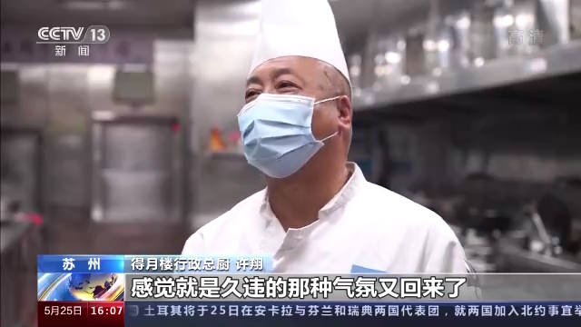 得月樓行政總廚 許翔:重新做松鼠桂魚(yú)的話,感覺(jué)那種久違的氣氛又回來(lái)了。19歲進(jìn)得月樓,一直做到現(xiàn)在。今年是60歲,從業(yè)40多年吧,從來(lái)沒(méi)有碰到過(guò)像疫情這樣的事情,停業(yè)三個(gè)月。