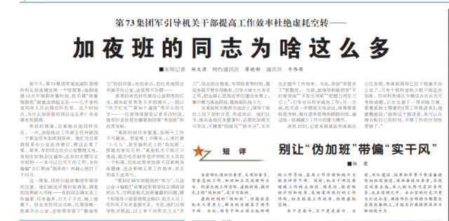 前兩天,《解放軍報》發(fā)了一篇題為《加夜班的同志為啥這么多》的文章,在不少人的朋友圈傳播。