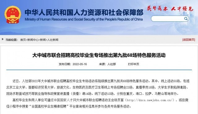 高校迎來畢業(yè)季。教育部從5月開始到8月中旬,開展高校畢業(yè)生就業(yè)“百日沖刺”系列活動,多措并舉促進2022屆高校畢業(yè)生更加充分更高質量就業(yè)。此外,人力資源和社會保障部、教育部等部門聯(lián)合各大網絡平臺組織了一系列招聘活動↓↓