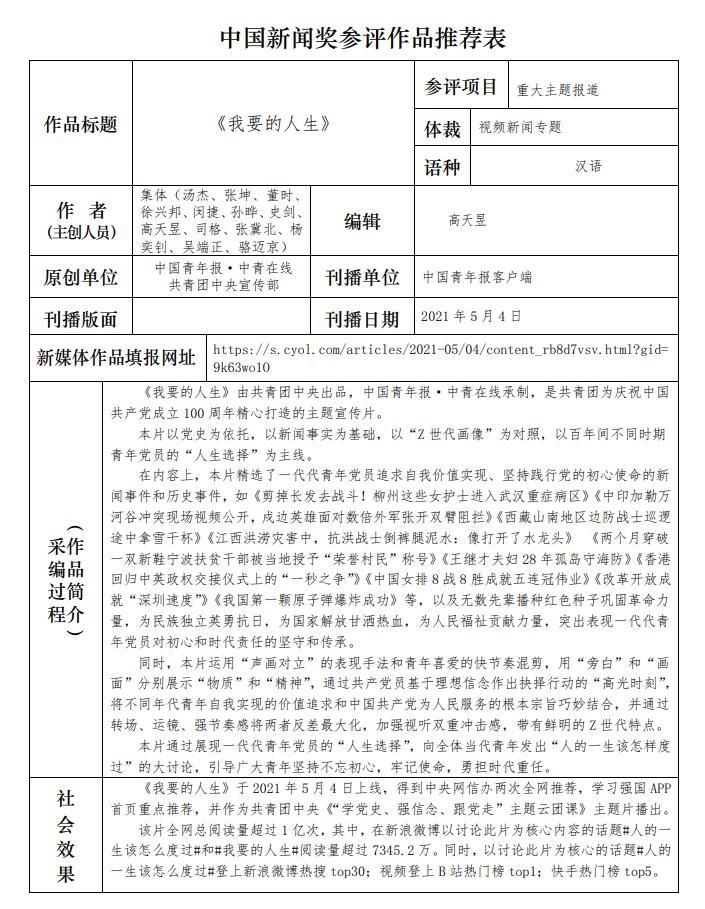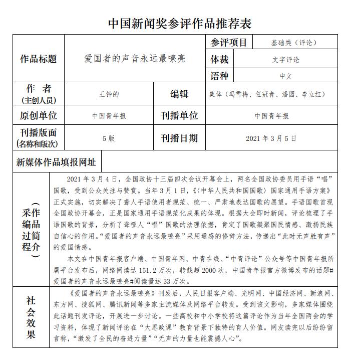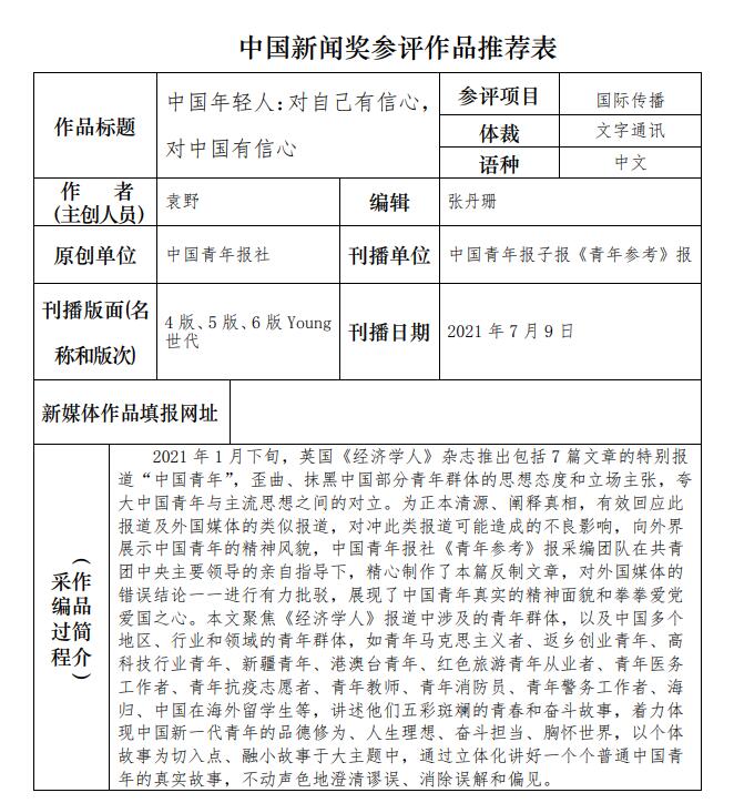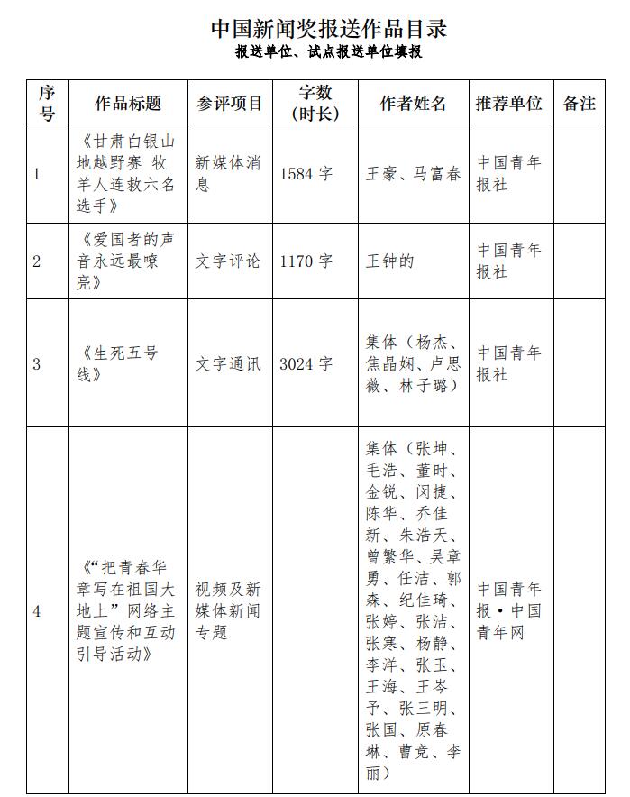 中國(guó)青年報(bào)社推薦參評(píng)第三十二屆中國(guó)新聞獎(jiǎng)報(bào)送作品公示