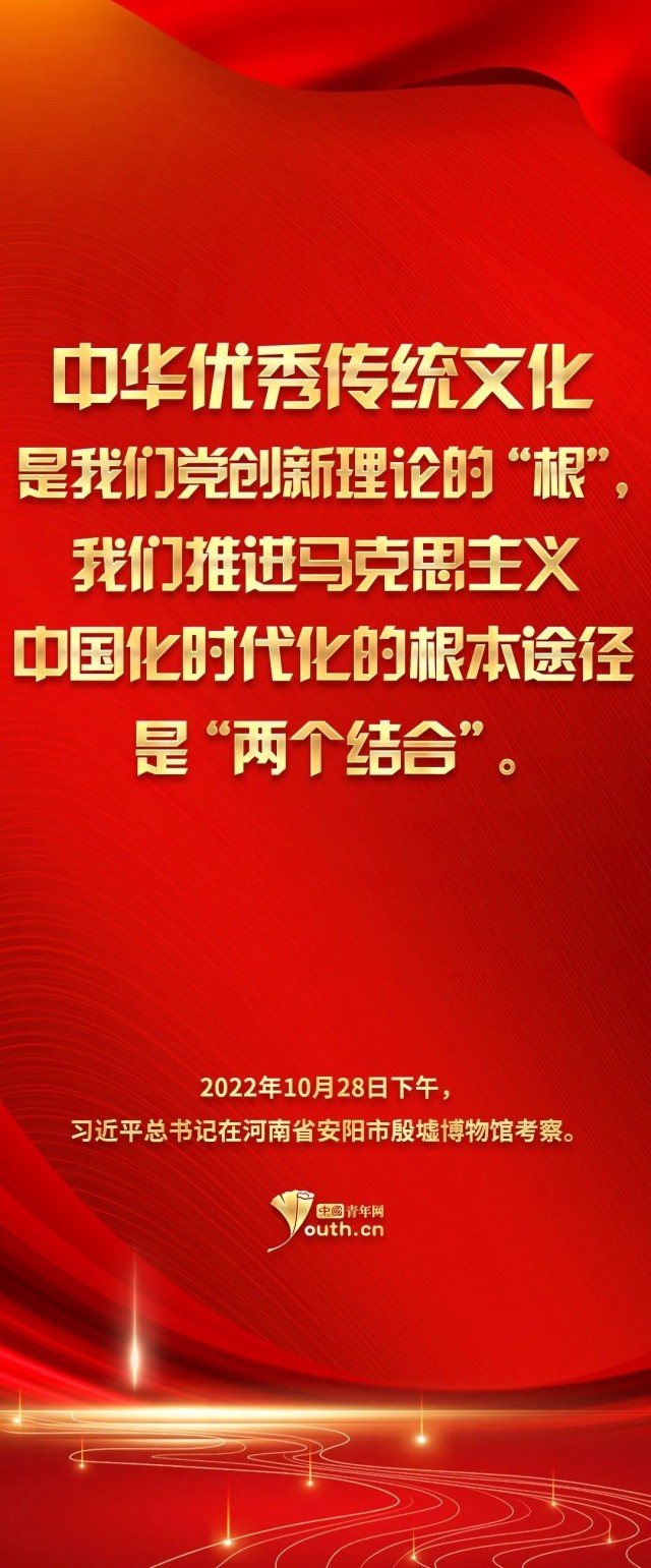 參天之木,必有其根;懷山之水,必有其源。習(xí)總書記的這次殷墟考察之行,讓我們將目光再次聚焦到中華民族的傳統(tǒng)文化之上。青山百代,仍蔭后人。正如習(xí)總書記指出的——中華優(yōu)秀傳統(tǒng)文化是我們黨創(chuàng)新理論的“根”,我們推進(jìn)馬克思主義中國(guó)化時(shí)代化的根本途徑是“兩個(gè)結(jié)合”——民族要獨(dú)立自強(qiáng),國(guó)家欲穩(wěn)步發(fā)展,文化是來自深處的支撐。作為當(dāng)代青年,我們理應(yīng)響應(yīng)時(shí)代號(hào)召,跟隨習(xí)近平總書記的腳步,去深入了解學(xué)習(xí)中華文明,兼顧歷史之沉淀與時(shí)代之新意,在向世界發(fā)揚(yáng)中華氣象的同時(shí),也邀得當(dāng)年之明月照徹今人。