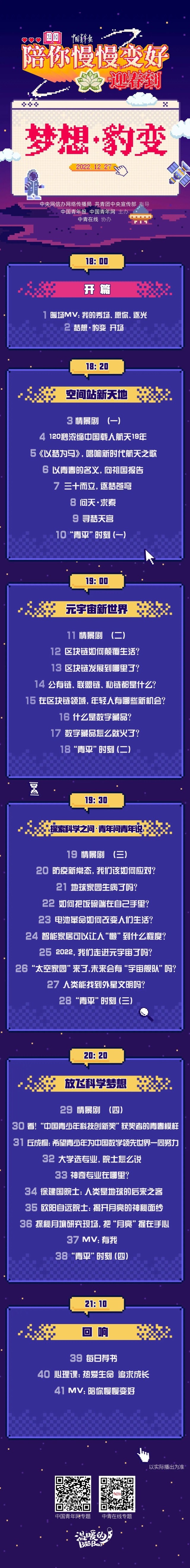 在這場聯(lián)播節(jié)目中,4位年輕記者將通過自己的經(jīng)歷和故事,和大家一起回顧2022年與科技創(chuàng)新有關(guān)的瞬間,重溫那些帶給我們“夢想”和“豹變”的激情時(shí)刻。聯(lián)播由空間站新天地、元宇宙新世界、探索科學(xué)之問、放飛科學(xué)夢想等四大篇章組成,重磅環(huán)節(jié)“探索科學(xué)之問”將聯(lián)合北京市科協(xié),共同推出聯(lián)名款“青年問青年說”,青年科學(xué)家和大學(xué)生一起盤點(diǎn)這些熱點(diǎn)科技問題:防疫新常態(tài),我們該如何應(yīng)對?極端天氣頻發(fā),地球家園生病了?2022年,我們走進(jìn)元宇宙了嗎?“太空家園”來了,未來會(huì)不會(huì)有“宇宙艦隊(duì)”…… 12月27日,我們不見不散。