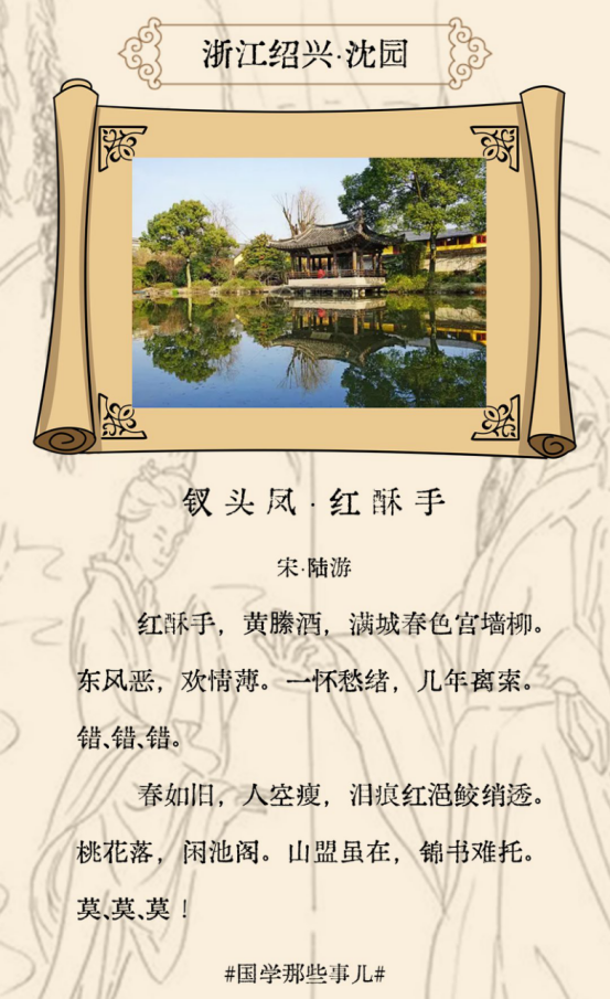 當(dāng)文人墨客于某一個(gè)地點(diǎn)緣事抒情,詩(shī)詞中飽含的情感伴隨著詩(shī)詞名篇穿越千古,讓我們?cè)谝髟亣@息間與詩(shī)人同悲同喜,其抒懷之地也名聞天下,成為后人追懷仰止的著名景點(diǎn)。當(dāng)我們站在古人曾佇立的地方,或憑欄遠(yuǎn)眺、或泛舟湖上......或許更能感知詩(shī)人寫(xiě)下千古名篇時(shí)的那一份心緒。(中青報(bào)·中青網(wǎng)見(jiàn)習(xí)記者 馮云慧 實(shí)習(xí)生 方淑睿)