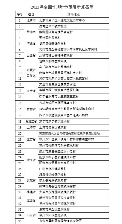 中國經(jīng)濟網(wǎng)北京1月10日訊(記者 魏金金)如今,“村晚”已經(jīng)成為豐富基層群眾節(jié)日文化生活、傳承年俗文化和培育鄉(xiāng)村文明的新風(fēng)尚。記者從文化和旅游部官網(wǎng)獲悉,2023年全國“村晚”示范展示點名單已出爐,北京市昌平區(qū)天通苑文化藝術(shù)中心等74個活動地點入選。