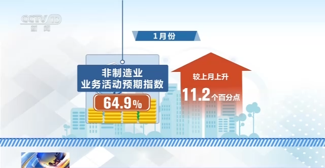 1月份中國非制造業(yè)商務(wù)活動指數(shù)為54.4%,較上月上升12.8個百分點,結(jié)束連續(xù)6個月下降走勢;新訂單指數(shù)為52.5%,較上月上升13.4個百分點,結(jié)束連續(xù)4個月下降走勢。非制造業(yè)供需呈現(xiàn)加速回升跡象。