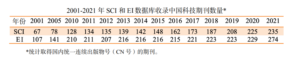 長期以來,與國家科技實力和科研產(chǎn)出水平相比,我國科技期刊發(fā)展相對滯后,國際顯示度偏低。該研究分析顯示,近年來,隨著我國加快高水平科技期刊建設(shè),我國科技期刊的國際影響不斷擴大,被國際重要檢索系統(tǒng)收錄的期刊數(shù)量越來越多。2021年,科學引文索引(SCI)收錄中國科技期刊235種;工程索引(EI)收錄中國科技期刊274種;醫(yī)學索引(Medline)收錄中國科技期刊147種。