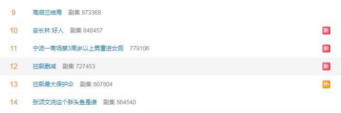 據(jù)統(tǒng)計,目前直接以“狂飆”為關鍵字的熱搜詞條已達18條。以劇中主要角色為關鍵詞,已有與“安欣”相關的熱搜22條,以“高啟強”為關鍵字的熱搜詞條16條,與“陳書婷”“大嫂”“李響”“高啟盛”“高啟蘭”“安長林”等角色相關的熱搜話題超過60條。