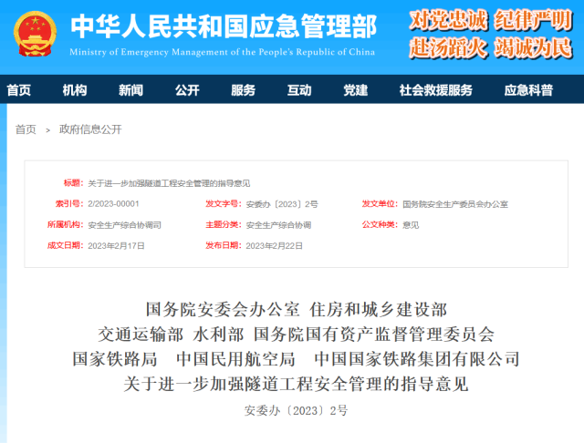 國(guó)務(wù)院安委辦等八部門:進(jìn)一步加強(qiáng)隧道工程安全管理