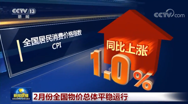 央視網(wǎng)消息(新聞聯(lián)播):國(guó)家統(tǒng)計(jì)局今天(3月9日)發(fā)布數(shù)據(jù)顯示,2月份,受市場(chǎng)供應(yīng)充足等因素影響,全國(guó)居民消費(fèi)價(jià)格指數(shù)(CPI)同比上漲1.0%,漲幅比上月回落1.1個(gè)百分點(diǎn),物價(jià)總體平穩(wěn)運(yùn)行。