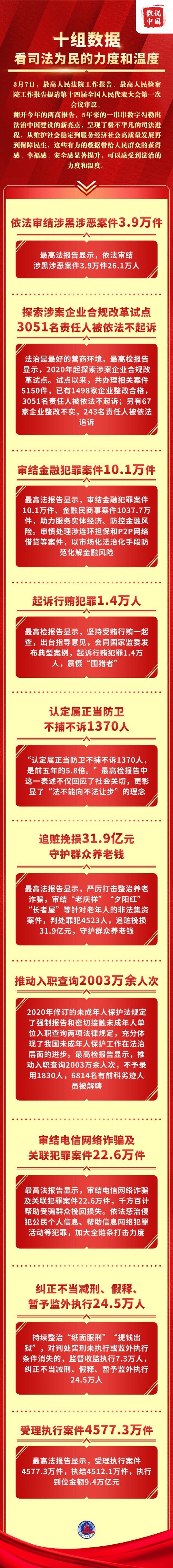 翻開今年的兩高報告,5年來的一串串?dāng)?shù)字勾勒出法治中國建設(shè)的新亮點,呈現(xiàn)了極不平凡的司法進(jìn)程,從維護(hù)社會穩(wěn)定到服務(wù)經(jīng)濟(jì)社會高質(zhì)量發(fā)展再到保障民生,這些有力的數(shù)據(jù)帶給人民群眾的獲得感、幸福感、安全感顯著提升,可以感受到法治的力度和溫度。