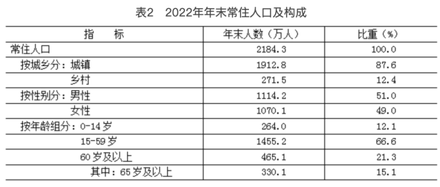 [3] 2022年常住人口有關數(shù)據(jù)為全國統(tǒng)一組織開展的2022年人口變動情況抽樣調(diào)查推算數(shù),調(diào)查標準時點為2022年11月1日零時。