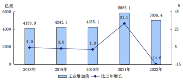 圖3 2018-2022年工業(yè)增加值及增長速度