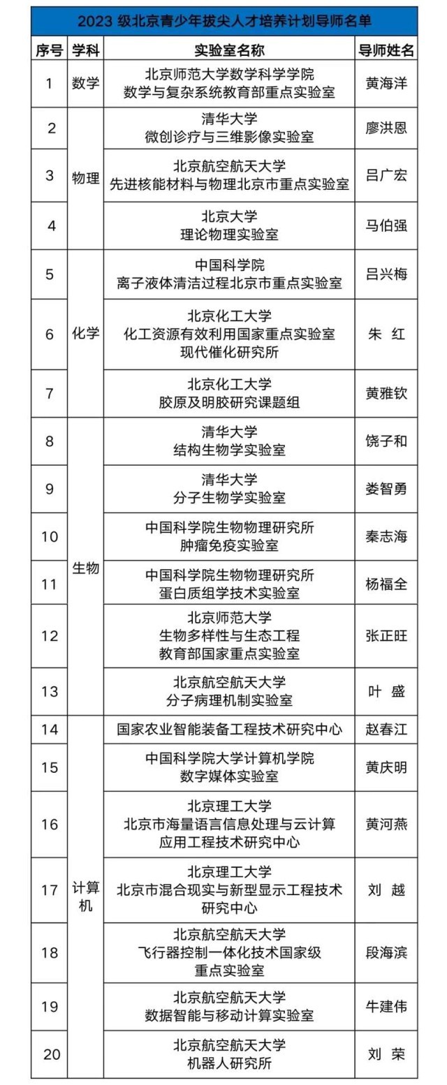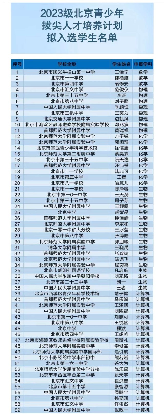 59名中學(xué)生擬入選“北京青少年拔尖人才培養(yǎng)計劃”