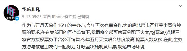 五月天北京演唱會(huì)主辦方華樂非凡微博截圖
