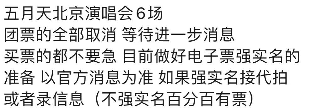本次五月天北京演唱會(huì)需要實(shí)名制購(gòu)票及入場(chǎng),且購(gòu)票完成后觀演人信息不可更改。所以在沒有提前找代搶的情況下,就不能買“黃牛票”了嗎?