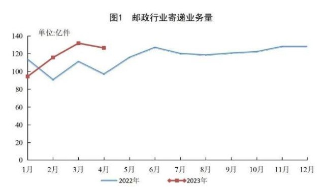 4月份,郵政行業(yè)寄遞業(yè)務量完成126.4億件,同比增長30.5%。其中,快遞業(yè)務量完成102.1億件,同比增長36.4%。
