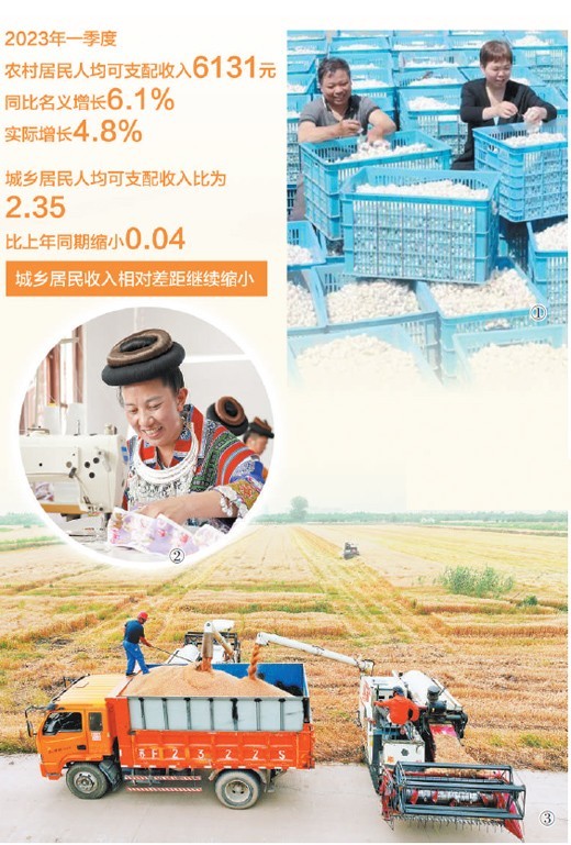 國家統(tǒng)計局發(fā)布的數據顯示,去年農村居民人均可支配收入首次邁上2萬元這個新臺階,城鄉(xiāng)居民收入相對差距持續(xù)縮小。今年一季度,農村居民人均可支配收入繼續(xù)保持增長勢頭,同比名義增長6.1%,實際增長4.8%,比去年全年提高0.6個百分點。