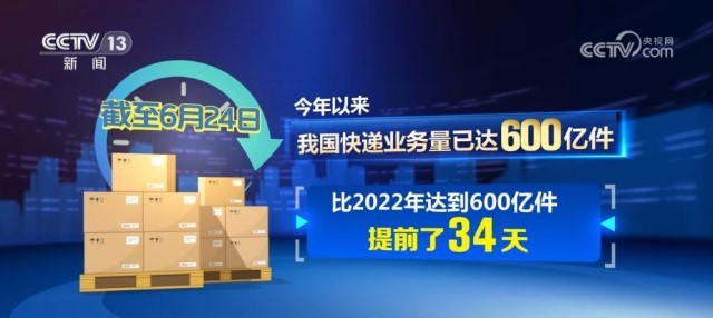 國家郵政局?jǐn)?shù)據(jù)顯示,截至6月24日,今年以來我國快遞業(yè)務(wù)量已達(dá)600億件,比2022年達(dá)到600億件提前了34天。