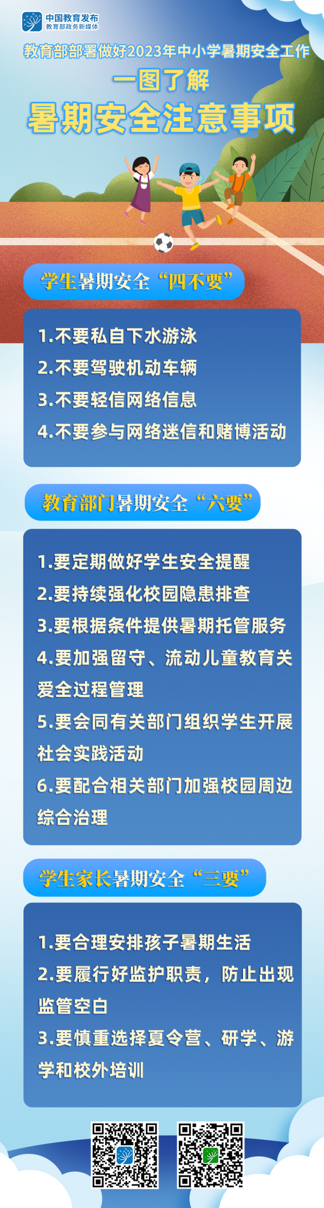 暑假來臨,教育部近日印發(fā)《關于做好2023年中小學暑期安全工作的通知》,部署做好相關工作。和教育小微通過一組大圖了解暑期安全注意事項↓↓↓