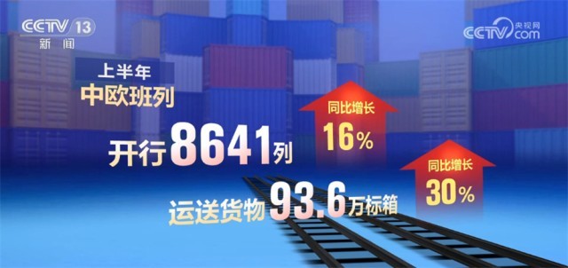上半年,中歐班列開行8641列、運送貨物93.6萬標箱,同比分別增長16%、30%。