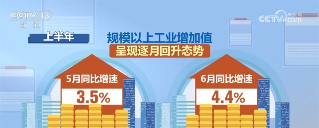 數(shù)據(jù)二:增長3.8%。工業(yè)和信息化部7月19日介紹,隨著3月份以來一批穩(wěn)經(jīng)濟(jì)政策效果持續(xù)顯現(xiàn),今年上半年,我國規(guī)模以上工業(yè)增加值同比增長3.8%,工業(yè)經(jīng)濟(jì)恢復(fù)向好。其中,5月、6月當(dāng)月同比增速分別為3.5%、4.4%,呈現(xiàn)逐月回升態(tài)勢。工業(yè)投資保持?jǐn)U張,上半年同比增長8.9%,增速較一季度加快0.3個百分點(diǎn)。