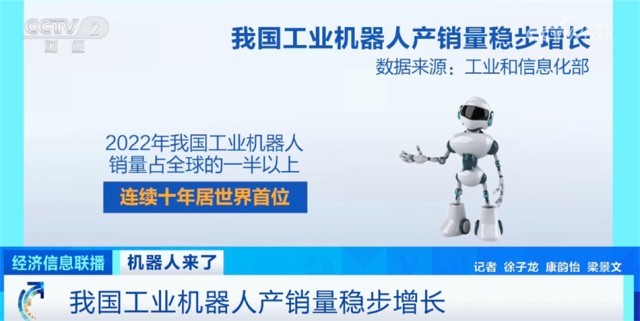 數(shù)據(jù)顯示,2022年,我國工業(yè)機器人銷量占全球的一半以上,連續(xù)十年居世界首位。2023年上半年,我國工業(yè)機器人產(chǎn)量達22.2萬套,同比增長5.4%。