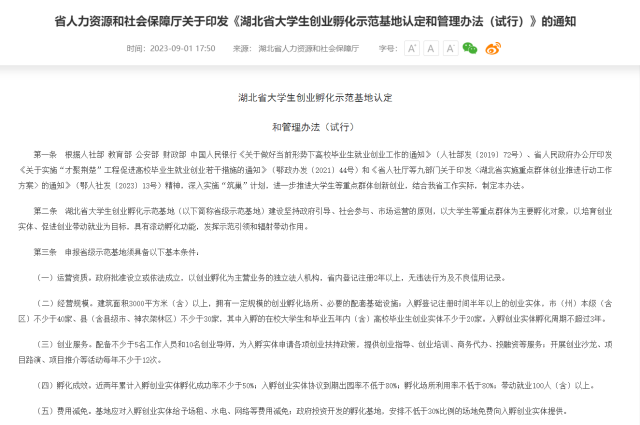 湖北省公布大學(xué)生創(chuàng)業(yè)孵化示范基地認(rèn)定和管理辦法 促進(jìn)創(chuàng)業(yè)帶動(dòng)就業(yè)