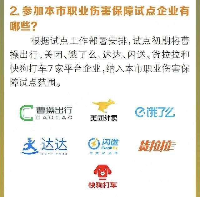 據(jù)了解,“新型社保”試點從去年7月1日啟動實施,第一批試點在曹操出行、美團(tuán)、餓了么、達(dá)達(dá)、閃送、貨拉拉、快狗打車7家平臺企業(yè),在全國7個省市開展。