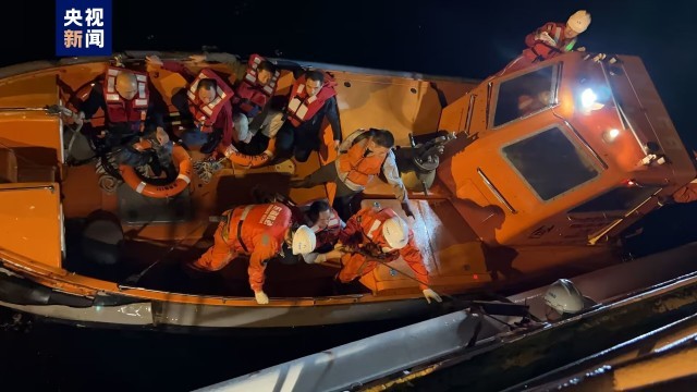 長(zhǎng)江口海域一砂石船進(jìn)水傾覆 13名船員全部獲救