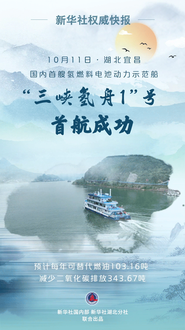 氫燃料電池動力示范船“三峽氫舟1”號10月11日上午在湖北宜昌三峽游客中心(九碼頭)完成首航,這標(biāo)志著氫燃料電池技術(shù)在內(nèi)河船舶應(yīng)用實現(xiàn)零的突破。據(jù)測算,“三峽氫舟1”號相比傳統(tǒng)燃油動力船舶,預(yù)計每年可替代燃油103.16噸,減少二氧化碳排放343.67噸。