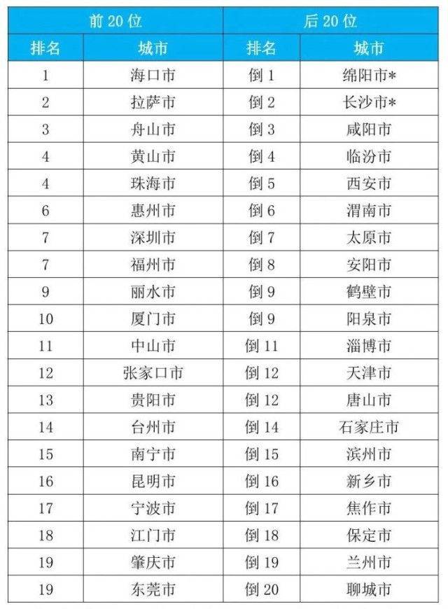 2023年1—9月168個(gè)重點(diǎn)城市空氣質(zhì)量排名前20位和后20位城市名單。(圖片來源:生態(tài)環(huán)境部)