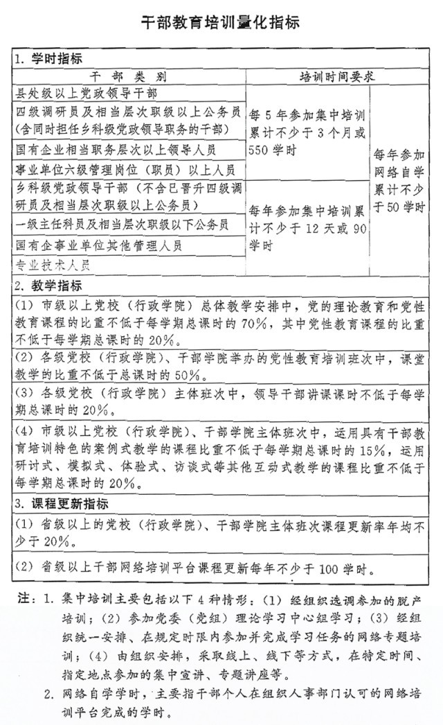 ?。ㄒ唬┩七M(jìn)網(wǎng)絡(luò)培訓(xùn)平臺(tái)建設(shè)。制定干部網(wǎng)絡(luò)培訓(xùn)指導(dǎo)意見,推行干部網(wǎng)絡(luò)培訓(xùn)通用標(biāo)準(zhǔn),健全干部網(wǎng)絡(luò)培訓(xùn)國(guó)家標(biāo)準(zhǔn)體系。建設(shè)以中國(guó)干部網(wǎng)絡(luò)學(xué)院為引領(lǐng)、省(自治區(qū)、直轄市)和部門行業(yè)網(wǎng)絡(luò)培訓(xùn)平臺(tái)為支撐、各單位網(wǎng)絡(luò)培訓(xùn)平臺(tái)為補(bǔ)充的平臺(tái)體系,逐步形成互聯(lián)互通、開放共享的網(wǎng)絡(luò)培訓(xùn)格局。出臺(tái)干部網(wǎng)絡(luò)培訓(xùn)學(xué)時(shí)管理辦法,探索建立平臺(tái)之間學(xué)時(shí)互認(rèn)機(jī)制。加強(qiáng)干部網(wǎng)絡(luò)學(xué)習(xí)成效考核,規(guī)范網(wǎng)絡(luò)學(xué)習(xí)行為。組織開展平臺(tái)建設(shè)、運(yùn)行情況評(píng)估。嚴(yán)格落實(shí)國(guó)家信息安全等級(jí)保護(hù)和數(shù)據(jù)分類分級(jí)保護(hù)等制度,按照“誰主管誰負(fù)責(zé)、誰建設(shè)誰負(fù)責(zé)”的原則,強(qiáng)化網(wǎng)絡(luò)培訓(xùn)安全保障。