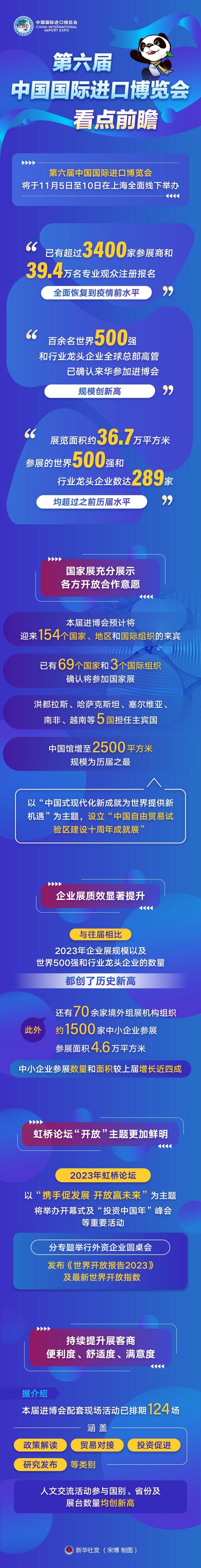 “已有超過3400家參展商和39.4萬名專業(yè)觀眾注冊報名,全面恢復到疫情前水平”“百余名世界500強和行業(yè)龍頭企業(yè)全球總部高管已確認來華參加進博會,規(guī)模創(chuàng)新高”“展覽面積約36.7萬平方米,參展的世界500強和行業(yè)龍頭企業(yè)數(shù)達289家,均超過之前歷屆水平”……