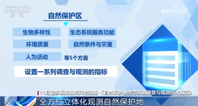 生態(tài)環(huán)境部發(fā)布的《自然保護(hù)地生態(tài)環(huán)境調(diào)查與觀測技術(shù)規(guī)范》將從11月1日起施行?!都夹g(shù)規(guī)范》對自然保護(hù)區(qū)的生物多樣性、生態(tài)系統(tǒng)服務(wù)功能、環(huán)境質(zhì)量、自然條件與災(zāi)害和人為活動等5個方面設(shè)置了一系列調(diào)查與觀測的指標(biāo),將綜合利用“天空地”各種觀測技術(shù)手段,形成集“遙感監(jiān)測、地面觀測與實地調(diào)查、資料收集與調(diào)查統(tǒng)計”等多種方法相結(jié)合的全方位、立體化調(diào)查與觀測技術(shù)體系。