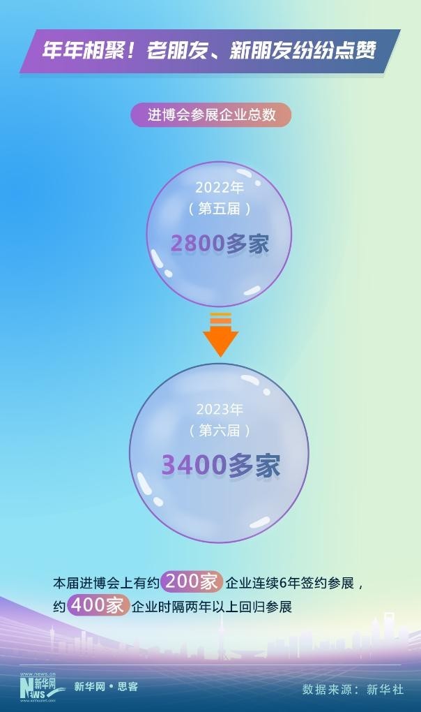 進(jìn)博會這個充滿機遇的舞臺迎接了一批又一批參展企業(yè)。據(jù)悉,本屆進(jìn)博會上,超過3400家參展企業(yè)在昵稱為“四葉草”的國家會展中心(上海)亮相,大大超過了上屆2800多家的規(guī)模?!芭笥讶Α辈粩鄶U大的同時,一些“老伙伴”對進(jìn)博會興趣不減。數(shù)據(jù)統(tǒng)計顯示,約200家企業(yè)連續(xù)6年簽約參展,約400家企業(yè)時隔兩年以上回歸參展,再次續(xù)寫它們的“進(jìn)博緣分”。