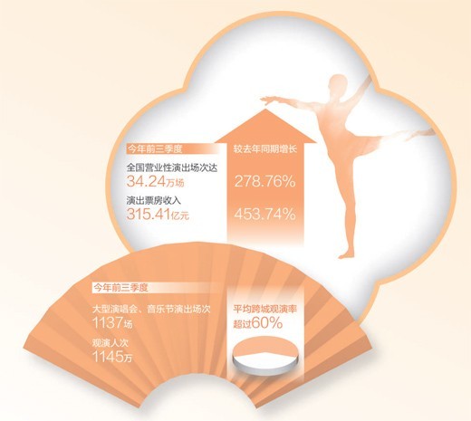 今年前三季度,全國營業(yè)性演出場次、票房收入同比大幅增長 演出市場 供需兩旺