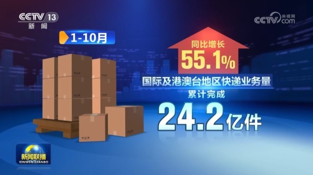 隨著我國(guó)主要快遞企業(yè)布局國(guó)際寄遞網(wǎng)絡(luò),加快海外倉(cāng)建設(shè),新開(kāi)通多條國(guó)際全貨機(jī)航線,通過(guò)為消費(fèi)者提供全鏈路跨境電商寄遞服務(wù),郵政快遞業(yè)在促進(jìn)產(chǎn)品跨境流動(dòng)中的作用明顯增強(qiáng),國(guó)際供應(yīng)鏈產(chǎn)業(yè)鏈保障水平進(jìn)一步提升。1—10月,國(guó)際及港澳臺(tái)地區(qū)快遞業(yè)務(wù)量累計(jì)完成24.2億件,同比增長(zhǎng)55.1%。