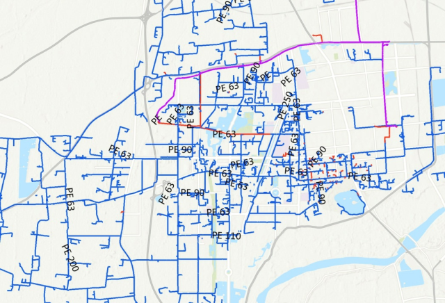 △境外地理信息系統(tǒng)軟件繪制的城市管網圖