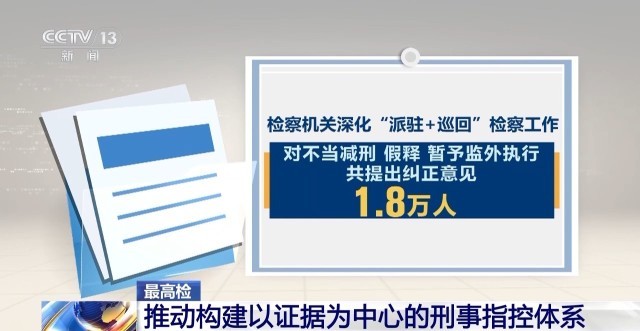 進一步提升刑事審判監(jiān)督的精準度,檢察機關提出刑事抗訴6713件,法院改判、發(fā)回重審4046件,抗訴改變率78.8%。同時,檢察機關深化“派駐+巡回”檢察工作,對不當減刑、假釋、暫予監(jiān)外執(zhí)行共提出糾正意見1.8萬人。