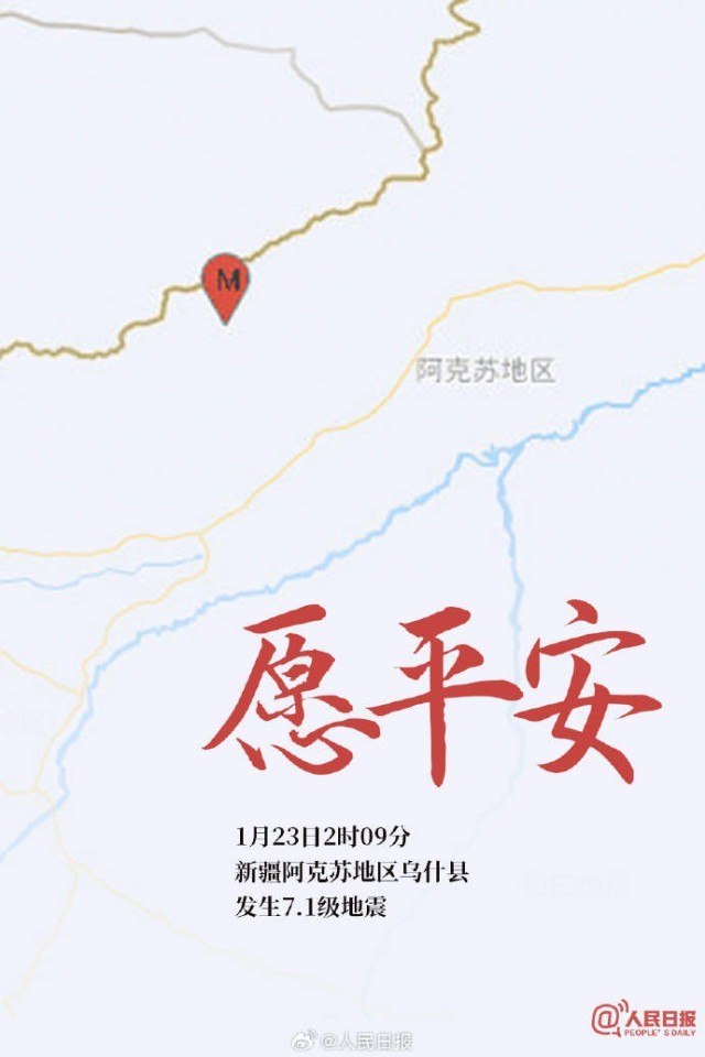 1月23日02時(shí)09分,在新疆阿克蘇地區(qū)烏什縣(北緯41.26度,東經(jīng)78.63度)發(fā)生7.1級(jí)地震,震源深度22公里。