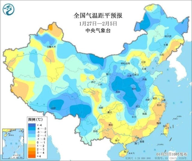 31日開始,冷空氣發(fā)力,中東部氣溫將自北向南逐步下跌,北方疊加雨雪影響,氣溫下滑明顯,到2月2日前后,冷空氣將推進(jìn)到長江以南,屆時(shí)淮河以北大部最高氣溫將低于0℃,長江沿線5℃上下,氣溫從偏高轉(zhuǎn)為明顯偏低。