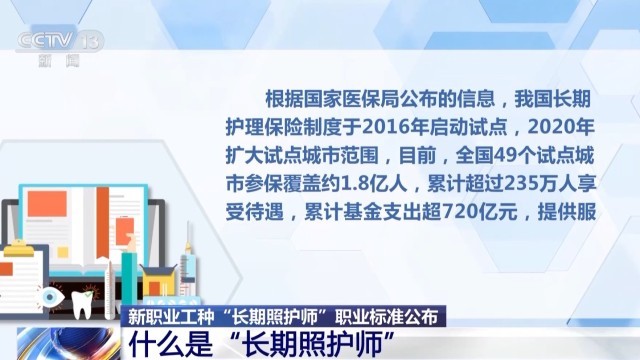 日前,兩部門制定了長期照護師的國家職業(yè)標準,并頒布施行。
