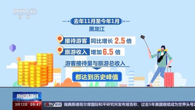 新的消費(fèi)業(yè)態(tài)也帶來了可觀的人氣,數(shù)據(jù)顯示,去年11月至今年1月,黑龍江接待游客同比增長(zhǎng)2.5倍、旅游收入增加6.5倍,游客接待量與旅游總收入都達(dá)到歷史峰值。