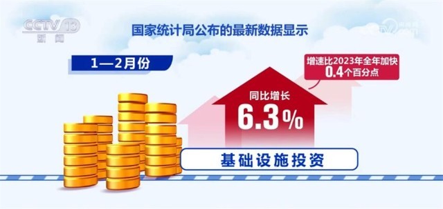 隨著增發(fā)國債項目的落地實施和支撐災(zāi)后應(yīng)急恢復重建資金的陸續(xù)下達,基礎(chǔ)設(shè)施投資增速小幅回升。國家統(tǒng)計局公布的最新數(shù)據(jù)顯示,1—2月份,基礎(chǔ)設(shè)施投資同比增長6.3%,增速比2023年全年加快0.4個百分點。其中,水利管理業(yè)投資增長13.7%、教育行業(yè)投資增長12.1%、基礎(chǔ)設(shè)施等民生補短板投資保持良好增長態(tài)勢。
