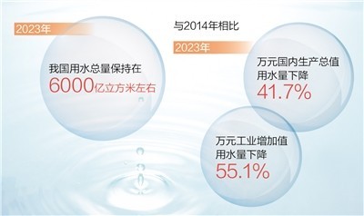本報(bào)北京3月24日電 (記者王浩)記者近日從水利部獲悉:水利部門全面貫徹落實(shí)“節(jié)水優(yōu)先、空間均衡、系統(tǒng)治理、兩手發(fā)力”治水思路,推動(dòng)用水方式向節(jié)約集約轉(zhuǎn)變。初步統(tǒng)計(jì)顯示,2023年我國用水總量保持在6000億立方米左右。這意味著,2014年以來,我國國內(nèi)生產(chǎn)總值增長近一倍的情況下,用水總量總體穩(wěn)定在6100億立方米以內(nèi);與2014年相比,2023年萬元國內(nèi)生產(chǎn)總值用水量、萬元工業(yè)增加值用水量分別下降41.7%、55.1%。全國用水“賬單”里的變與不變,反映了用水效率和效益持續(xù)提升,印證了發(fā)展質(zhì)量和效益不斷提高。