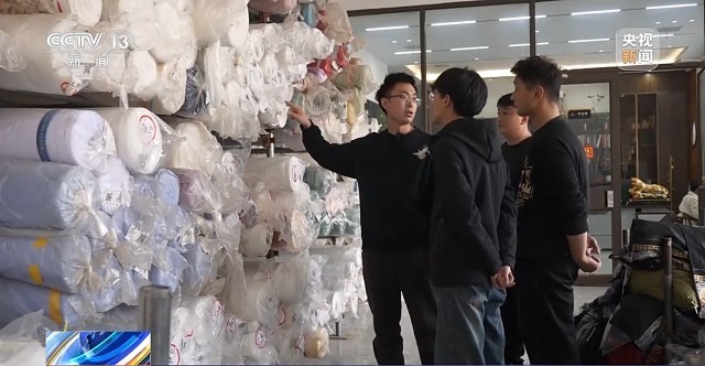 魏平安介紹,完備的產(chǎn)業(yè)鏈正是當(dāng)年吸引他回鄉(xiāng)創(chuàng)業(yè)的重要原因之一。他建議我們?nèi)ッ媪陷o料一條街轉(zhuǎn)轉(zhuǎn),他說(shuō)空著手在這走5公里就能做出一件漢服。而現(xiàn)在這里依然是他采購(gòu)面料輔料的地方。