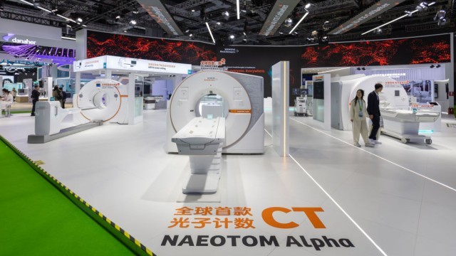 2023年11月8日在第六屆中國國際進(jìn)口博覽會(huì)醫(yī)療器械及醫(yī)藥保健展區(qū)拍攝的西門子展位。新華社記者 王翔 攝