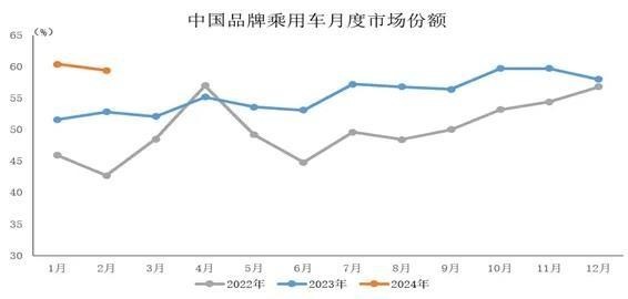 2024年1-2月,中國品牌乘用車銷量206.6萬輛,同比增長26.7%,市場份額為59.9%,上升7.6個百分點。