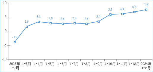 互聯(lián)網(wǎng)業(yè)務(wù)收入穩(wěn)步提升。1—2月份,我國規(guī)模以上互聯(lián)網(wǎng)和相關(guān)服務(wù)企業(yè)(以下簡稱互聯(lián)網(wǎng)企業(yè))完成互聯(lián)網(wǎng)業(yè)務(wù)收入2463億元,同比增長7.6%,增速較2023年全年提升0.8個百分點。